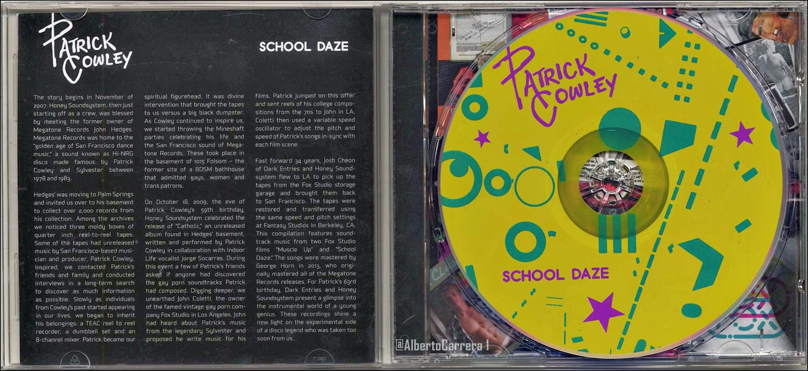 Un disco doble reúne el trabajo del productor y pionero Patrick Cowley utilizado en el cine porno homosexual de principios de los años ochenta. Conocido por sus himnos de música disco, Cowley mostró su lado más experimental e íntimo en las composiciones que forman 'School Daze'